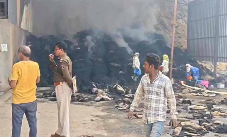 राइस मिल में भीषण आग, लाखों का धान और हजारों खाली बारदाने जलकर राख