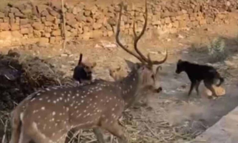 छतरपुर जिले के बाजना वन परिक्षेत्र के शाहगढ़ गांव में बुधवार सुबह एक जंगली हिरण भटककर रिहायशी इलाके में पहुंच गया। इस दौरान आवारा कुत्तों के झुंड ने उसे घेरकर हमला कर दिया। गांव के बच्चों की सतर्कता और ग्रामीणों की मदद से हिरण की जान बचाई जा सकी।