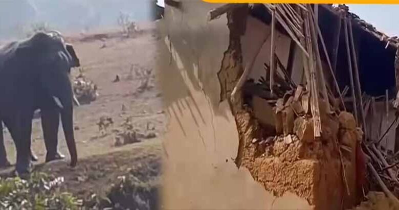 हाथियों के दल का खाड़ा गांव में हमला, मकान तोड़ा, दो गायों की मौत