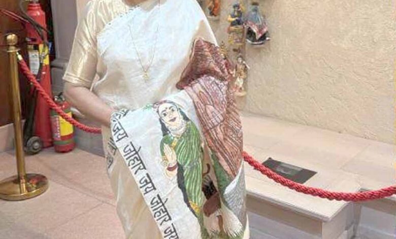 शपथ ग्रहण समारोह के दौरान सांसद लक्ष्मी वर्मा ने एक विशेष रूप से डिज़ाइन की गई साड़ी धारण की थी, जिसने संसद भवन में सभी का ध्यान आकर्षित किया। यह परिधान पूर्णतः छत्तीसगढ़ की कला, संस्कृति और धरोहर का प्रतिनिधित्व कर रहा था। साड़ी के मुख्य भाग पर प्रदेश के ऐतिहासिक और पुरातात्विक गौरव ‘भोरमदेव मंदिर’ की सुंदर आकृति और प्रदेशवासियों की अगाध आस्था की प्रतीक ‘छत्तीसगढ़ महतारी’ का भव्य चित्र उकेरा गया था। इसके अतिरिक्त साड़ी की किनारी (बॉर्डर/लेयर) पर पारंपरिक छत्तीसगढ़ी अभिवादन ‘जय जोहार’ स्पष्ट अक्षरों में लिखा हुआ था, जो प्रदेश की सादगी, आत्मीयता और भाईचारे का सशक्त संदेश दे रहा था।