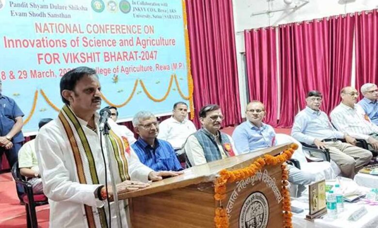 उप मुख्यमंत्री  राजेन्द्र शुक्ल ने कृषि महाविद्यालय रीवा में विकसित भारत 2047 के लिए विज्ञान और कृषि में नवाचार विषय पर आयोजित दो दिवसीय राष्ट्रीय सम्मेलन शुभारंभ किया। इस अवसर पर उप मुख्यमंत्री ने कहा कि खेती हमारी अर्थव्यवस्था का आधार है। हम वर्तमान में विपुल अन्न और फल सब्जियों का उत्पादन कर रहे हैं। उत्पादन बढ़ाने के लिए हमने खाद और कीटनाशकों का अत्यधिक उपयोग किया है, जिसके कारण धरती माता बीमार हो गई हैं। धरती माता को स्वस्थ रखना और भावी पीढ़ी को स्वस्थ जीवन देने के लिए प्राकृतिक खेती इस समय की सबसे बड़ी आवश्यकता है । गोपालन पर आधारित प्राकृतिक खेती से ही हमें अच्छे स्वास्थ्य की नेमत मिलेगी। हर किसान अपनी कुल जमीन के दस प्रतिशत भाग पर प्राकृतिक विधि से अनाज फल और सब्जी का उत्पादन करें जिससे कम से कम उसके परिवार को रसायन रहित पौष्टिक आहार मिल सके। सेमिनार का आयोजन कृषि महाविद्यालय, जवाहरलाल नेहरू कृषि विश्वविद्यालय जबलपुर, एकेएस यूनिवर्सिटी तथा श्याम दुलारे तिवारी शिक्षा एवं शोध संस्थान द्वारा किया जा रहा है।