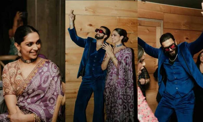 वहीं दीपिका पादुकोण हमेशा की तरह क्लास और एलिगेंस की मिसाल दिखती हैं। उन्होंने गहरे बैंगनी रंग की प्रिंटेड साड़ी पहनी है, जिस पर खूबसूरत डिजाइन बने हैं। लो बन हेयरस्टाइल उनकी शार्प फीचर्स को उभारता है। स्टेटमेंट चोकर, चूड़ियां और हल्की रिंग्स उनकी जूलरी को खास बनाती हैं। सॉफ्ट मेकअप और ग्लोइंग स्किन के साथ उनका लुक बेहद सिंपल, ग्रेसफुल और शादी के लिए एकदम परफेक्ट है।