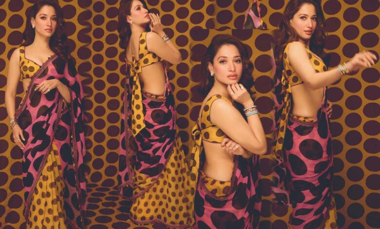 पोल्का डॉट साड़ी में तमन्ना ने दिखाया कमाल, ब्लाउज ने 70 के दशक के ग्लैमर को नया रूप दिया
