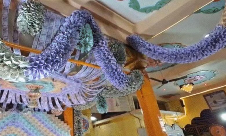 मंदिर के पुजारी के अनुसार, नोटों की माला, मुकुट और लड़ियों को तैयार करने में सात कलाकारों की टीम को करीब तीन दिन का समय लगा। कलाकारों ने नोटों से आकर्षक सजावट कर मंदिर को भव्य रूप दिया है।