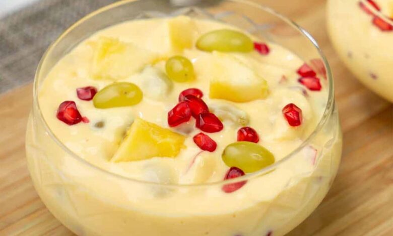 इसके बाद जब भी आपको परोसना हो तो कटे हुए फल ठंडे कस्टर्ड में मिलाएं।